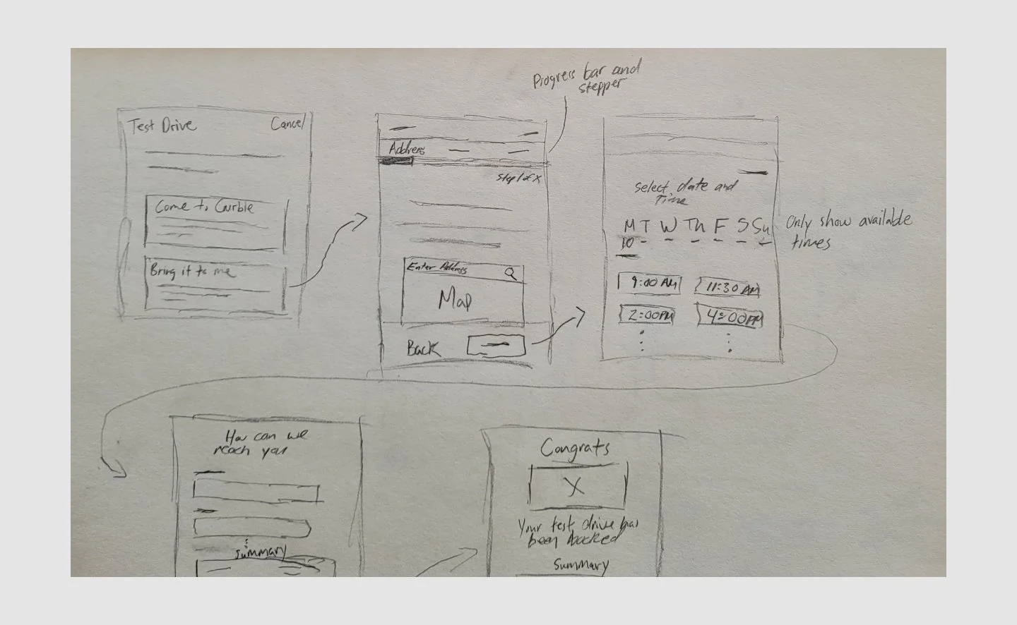 I researched our competitors to see what they were using to schedule and book test drives online. I also looked into other online booking systems to see their solutions and strategies.