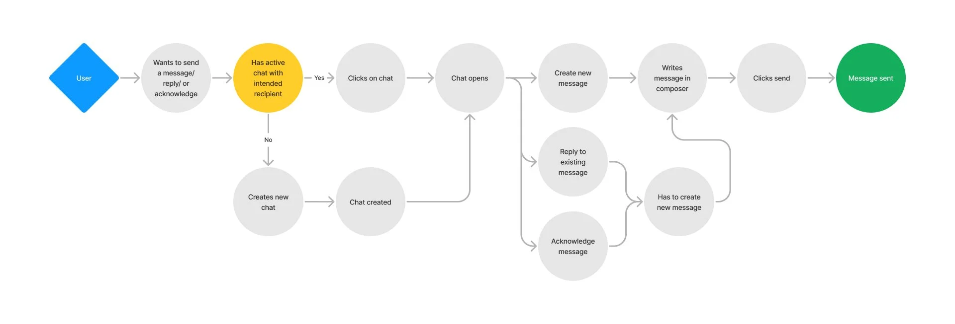 I created a simple user flow to help understand the existing messaging process and shared it with the team. This made it clear how rigid the feature was for users.