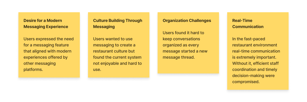Culture Building Through Messaging: Users wanted to use messaging to create a restaurant culture but found the current system not enjoyable and hard to use.